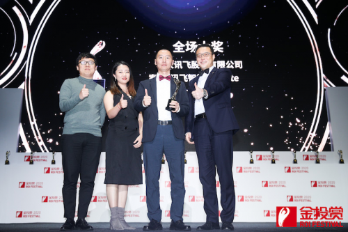 科大讯飞消费者事业群副总裁徐荣盛(右二)领取“2020金投赏商业创意奖全场大奖”