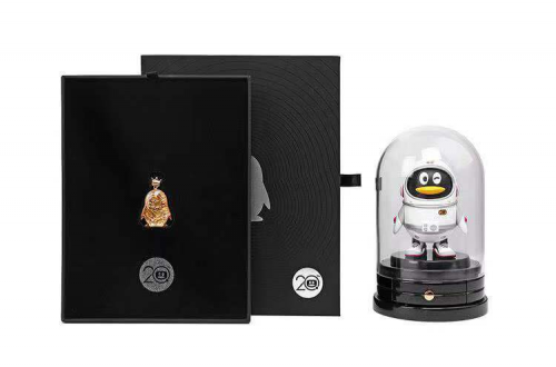 值得注意的是,腾讯QQ20周年纪念版的太空鹅公仔,以太空企鹅探索科技为设计理念,早期基础版一经推出就深受QQ用户及时尚达人的喜爱。而此次定制版礼盒中也配有多功能收纳展示台及亚克力外罩,既美观又实用,是用户收藏的不二之选!