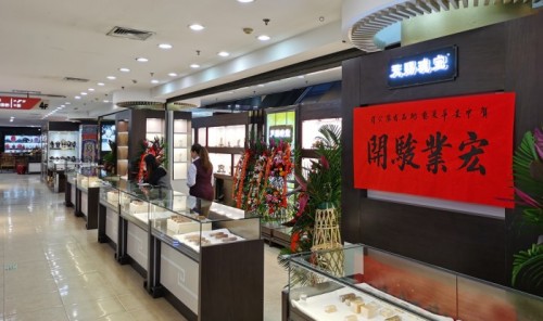 王府井工美大厦四层的巴林石“天赐瑰宝”品牌工艺品店
