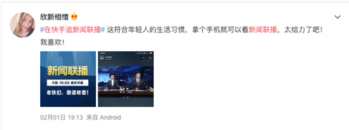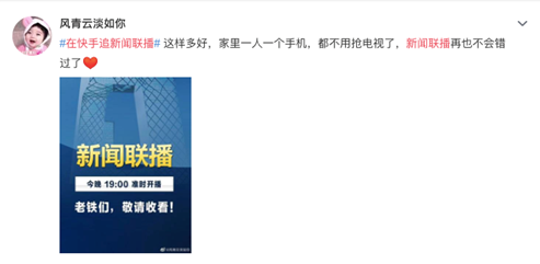 “这下子可以每天在快手上追《新闻联播》了,真是大大方便了我们的生活 。”