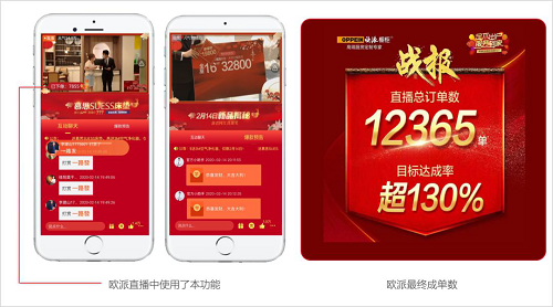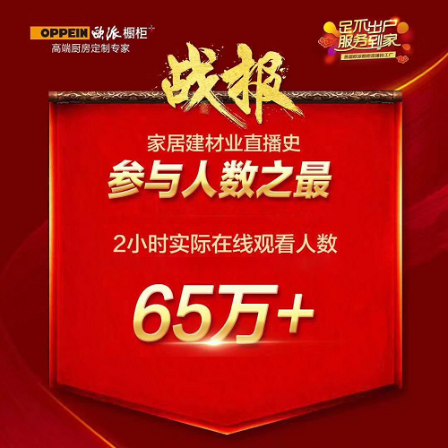 在黑天鹅事件最严重的2月,家居行业知名企业欧派家居联手商业直播平台——盟主直播共同发起了“直播抢工厂”大型促销活动,直播2小时成交12365单、在线参与人数超过65万、总销售额超过1个亿,多项数据超过预期。