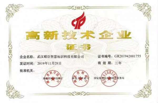 近日,经全国高新技术企业认定管理工作领导小组办公室批复,武汉市2019年第二批高新技术企业名单正式公布。根据《高新技术企业认定管理办法》和《高新技术企业认定管理工作指引》有关规定,武汉精臣智慧标识科技有限公司(下称精臣)顺利通过国家高新技术企业资质认定。