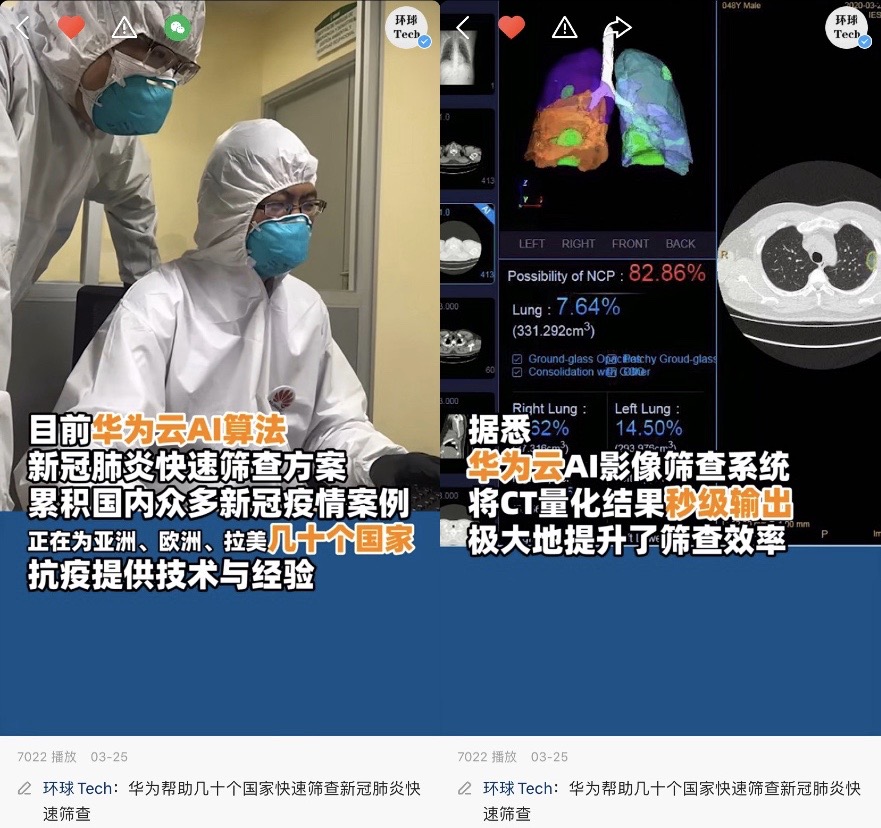 目前,华为云AI算法新冠肺炎快速筛查方案正在为亚洲、欧洲、美洲等十几个国家抗疫提供技术和经验。“不愧是华为,关键时候彰显民族企业的担当”“身为华为员工,我很自豪”……