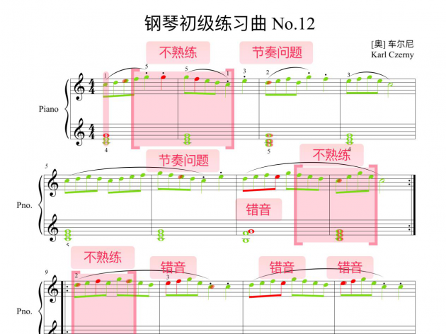 高科技AI通过“琴声识别”技术纠错,比真人更精准,孩子练琴的时候,只需打开APP,孩子弹错的音或节奏,都会在谱子上标注出来,AI还会告诉孩子,正确的音应该怎么弹。这样,孩子就可以重点练习错误的部分,家长也可以重点关注这部分,练琴效率可以大大提高。