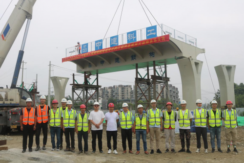 6月16日上午 10点42分,随着第一段长15米、宽6.5米、高1.5米、重约30吨钢箱梁缓缓起吊,向既定位置移动。这座依次跨越成双大道、牧马山干渠、江安河、江安滨河北路以及金航路的全钢结构绿道桥梁顺利完成首吊。