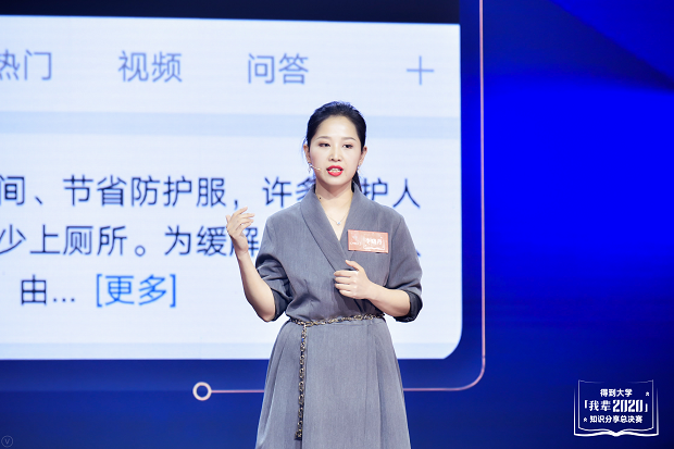 比赛现场,每一位选手都围绕主题,献上了8分钟的精彩演讲。其中,多位得到大学学员分享了自己在抗疫前线“打硬仗”的故事。