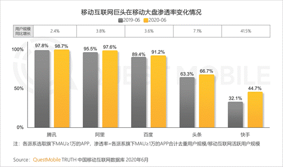 另外,对中国移动互联网大盘的渗透率,快手也从去年6月的32.1%,提升到今年的44.7%。