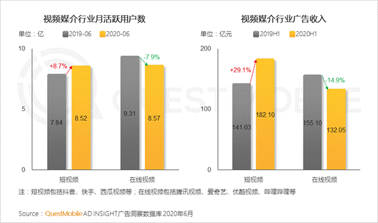 当用户规模创下高,短视频、直播平台开始从流量和广告收入,双向挤占在线视频行业的市场份额。