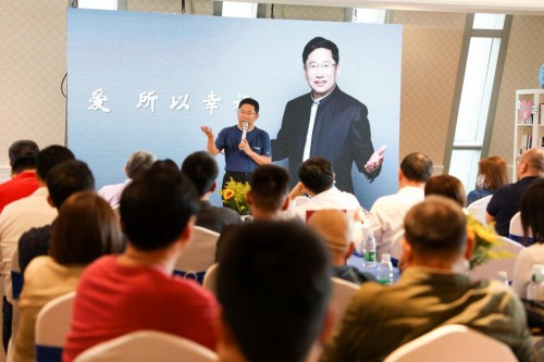 其余4位主题分享嘉宾徐井宏、王功权、王世渝、高斌的主题演讲可谓各有各精彩。徐井宏老师以素朴的语言分享了他与晓艳总相识和成为亚杰“摇篮计划”师生的结缘经历,以及他们联合发起幸福社生态圈和幸福私塾智库的初心和意义。当他提及人生中最珍贵且难以忘怀的某个场景,全场数位嘉宾几近落泪。