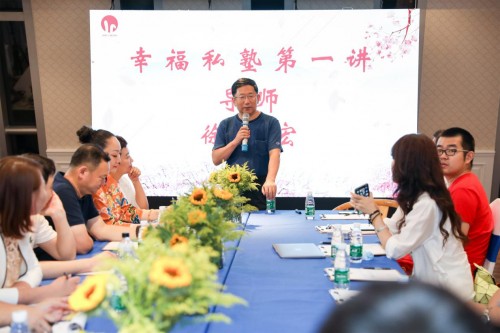 美味的幸福晚宴结束后,晚8点15分,当天最令人期待、最具有意义的环节之一是幸福私塾发起人、导师徐井宏主讲的《幸福私塾第一讲:简约商业思维》课堂准时开课。