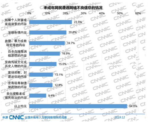 与此同时,网络不良信息正威胁着未成年人的网络学习和生活。《报告》调查结果显示,46%的未成年网民曾在上网过程中遭遇过各类不良信息,包括淫秽色情、血腥暴力等内容。网络不良信息不仅严重影响未成年人心理健康,甚至可能成为诱发犯罪的重要因素。