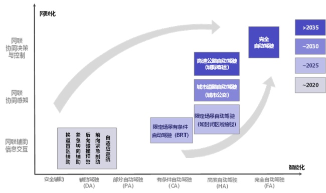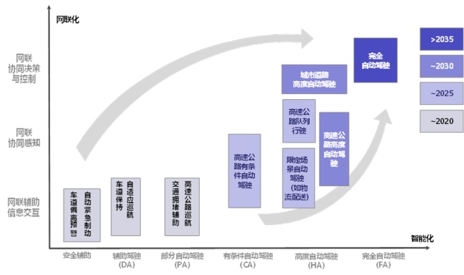 2035年以后,FA级自动驾驶乘用车开始应用。