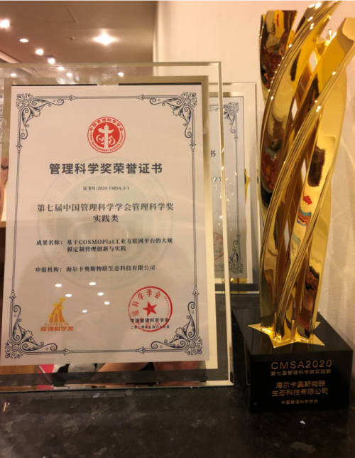 中国管理科学学会以学术委员会和管理科学奖基金管理委员会为核心,主管单位为国家科技部,其主办评选的中国管理科学学会“管理科学奖”是中国管理界规格最高、权威性最强的奖项之一。今年九月,在本届奖项评选中,卡奥斯COSMOPlat凭借大规模定制管理创新斩获管理科学实践类综合大奖,成为工业互联网领域唯一获奖的企业。