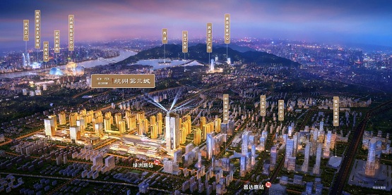 据悉,该项目位于杭州核心区,以“产城人文”四维融合营造经验为背书,定位“城市核心区·大型 TOD 综合体”,结合杭州9号线地铁上盖交通资源优势,引入集城市双 MALL(曲江书城、新鸥鹏教育城)、总部基地、国际人才港、天空之城、甲级商务写字楼等文化商业、文化教育产业,结合杭州深厚的文化历史底蕴,融合商业、商务、商办、住区等多维业态,打造杭州城市文化地标,为板块发展提供重要动力和赋能,因此备受政府关注。