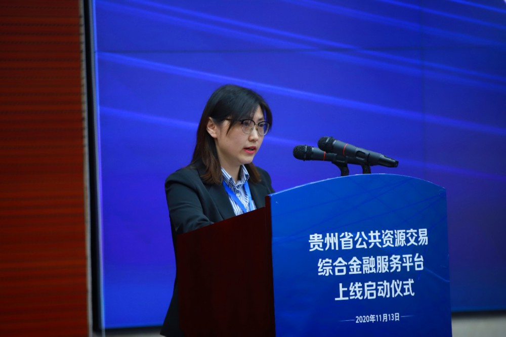 云上贵州大数据产业发展有限公司高级副总裁兼数据管理部总经理叶玉婷代表平台承建方发言。叶玉婷说,“贵州省公共资源交易综合金融服务平台”是云上贵州依托贵州省统一安全可靠的数据开发利用云平台,通过合理合规利用政务公共数据资源,开发的第一个创新应用场景;是省公共资源交易中心、云上贵州、广联达三方积极响应公共数据资源开发利用试点的生动体现。按照“政府主导、企业融合、联合运营”模式,在确保数据可用不可见的前提下,利用招投标、企业等数据、构建企业画像、产业关联等模型,深入有效挖掘公共资源交易数据价值,引入金融机构,为参与交易的市场主体提供在线金融服务,进一步优化了营商环境,充分释放了公共资源经济价值和社会价值。未来,云上贵州将坚持践行“数据创造价值”理念,按照“聚数据、搭平台、建生态”路径,秉承客户至上的“成全”文化,努力发掘更多数字经济新产业、新业态、新模式,为贵州省实施“大数据”战略作出更多贡献。