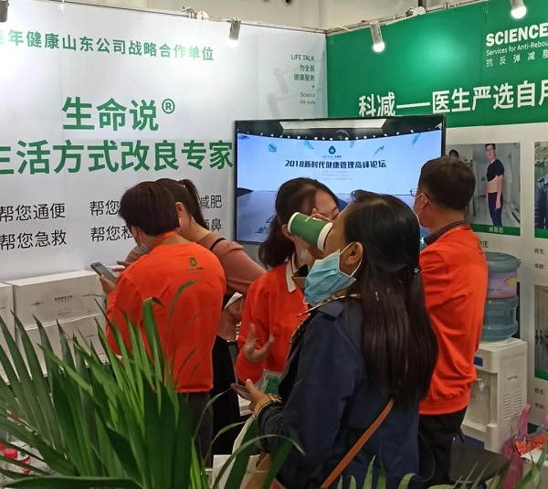 展会上,生命说展位前来参观的人员络绎不绝,热闹非凡。现场工作人员为大家详细讲解,生命说科减抗反弹减脂技术的原理和产品。