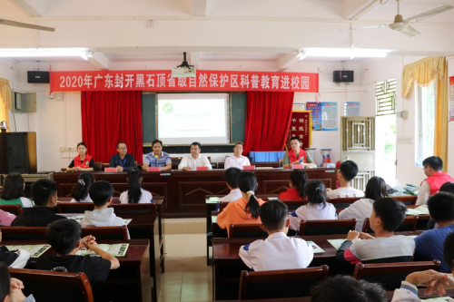 为了让“绿水青山就是金山银山”理念深入人心,助力社区居民和学生保护自然的生态意识形成,封开黑石顶自然保护区面向不同受众群体,坚持开展形式多样的科普教育宣传活动,提升全社会生态保护意识,建设自然教育社会大课堂,向全民科普、全民保护的方向努力。据了解,黑石顶省级自然保护区因北回归线贯穿自然保护区中部而被誉为“北回归线上的绿洲”,属于典型的北回归线上的森林生态系统类型,主要保护对象是热带、亚热带常绿阔叶林及野生动植物,国家珍稀濒危动植物资源及其生境,并重点保护国家一级珍稀濒危保护植物伯乐树、合柱金莲木, 二级珍稀濒危保护植物黑桫椤种群、封开蒲葵等特有种及其生境。有珍稀濒危物种和国家I、II级重点保护物种多达50多种,是一个不可多得的自然科普教育基地。