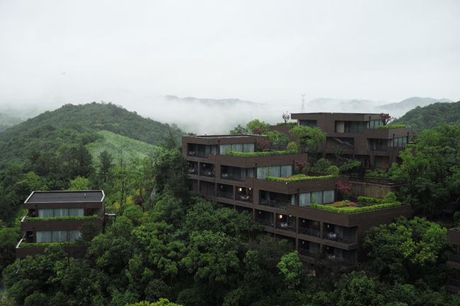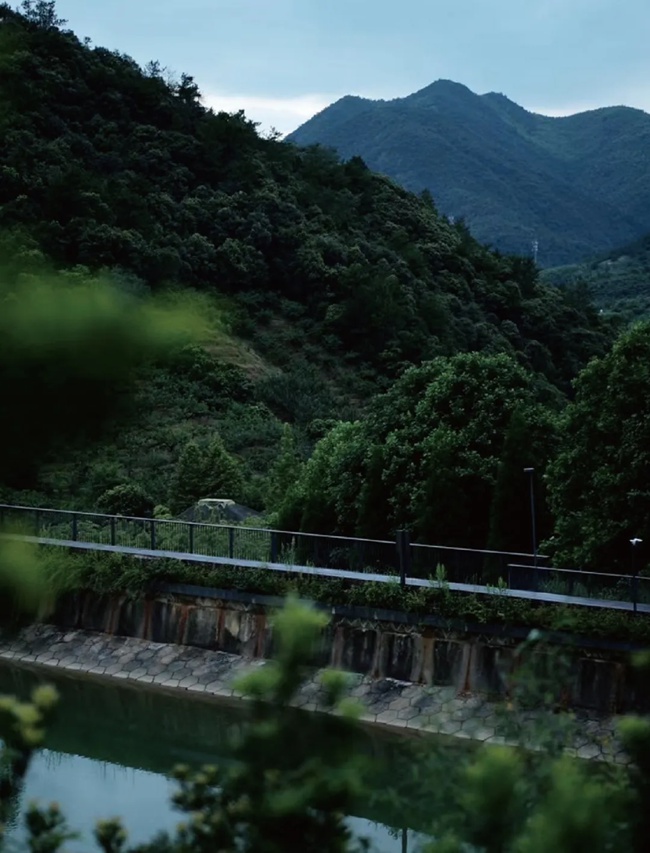 进入园区的那一刻,原生态的自然气息就席卷全身,风从竹海拂过,带来丰富负氧离子的味道,抬眼望去,山峦延绵看不到尽头,与天色交接成一幅清丽的江南水墨画。动静分离的理念极大地维护了这片山水间的世界,隔绝尾气的污染维持一份本真。