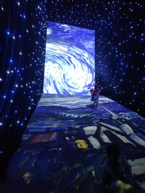 最近几年,沉浸式光影艺术展十分流行,把静态经典名画通过“声光”技术全方位立体 再现,相信很多人都不陌生。这类沉浸式光影艺术展通过灯光、音乐、VR 互动等现代手段, 带给观众全方位多角度多感官的沉浸式体验,极大地提高大家参与热度,是传统艺术和现代 技术的完美融合。其中,梵高主题的沉浸式艺术展可以说是在中国遍地开花。看完梵高的星空和向日葵被立体完美还原,大家好不好奇如果是透视绝佳的名画被还原又是怎么样的体验?
