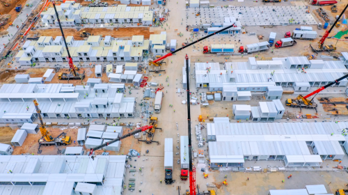 为竭力做好疫情救治防控工作,深圳市委市政府委托中建科工承担EPC总承包重任。深圳公司第一时间吹响“冲锋号”,克服了春节+疫期的劳动力紧张;克服了上万人现场施工的防疫难题;克服了36小时考察锁定百家分包、万种材料的考验;克服了现场交通的不便……在20天的极限工期里,对施工任务发起了饱和攻击,现场铺满、时间不断,7天,完成9.2万平方米范围的场地清表、土方挖运、级配碎石施工、底板钢筋绑扎及混凝土浇筑;7天,完成现场2560个箱体的现场安装;6天,完成1000个床位的室内装饰、6.8万平方米内的室外管网及绿化施工。