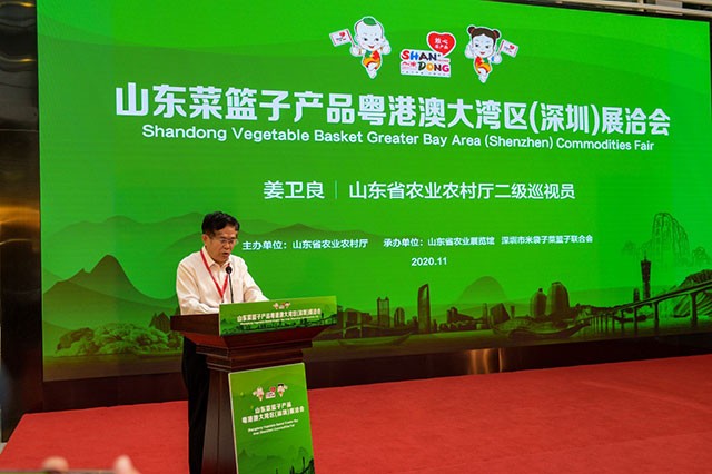 山东省农业农村厅二级巡视员姜卫良为展洽会致辞,在致辞中介绍,山东省农业农村厅大力推进与粤港澳大湾区“菜篮子”对接各项工作,共同促进构建标准化、现代化的大湾区菜篮子生产流通及安全监管体系。目前,山东共有119个生产基地和加工企业获得大湾区菜篮子认定,在潍坊、聊城设立2个大湾区菜篮子配送分中心,在广州市建成集加工仓储、展示品鉴、行业交流等功能于一体的潍坊农产品大湾区展示交易中心。