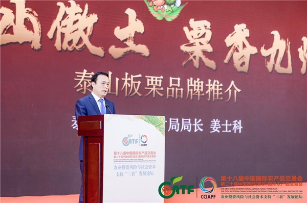 在农业投资风险与社会资本支持‘三农’发展论坛期间,泰安市农业农村局局长姜士科对泰山板栗品牌进行了专题推介。姜局长表示,近年来,泰安市明确板栗产业发展定位,立足资源优势,推行产业化经营,唱响“泰山板栗”品牌,使泰山板栗产业发展得到全面提升。
