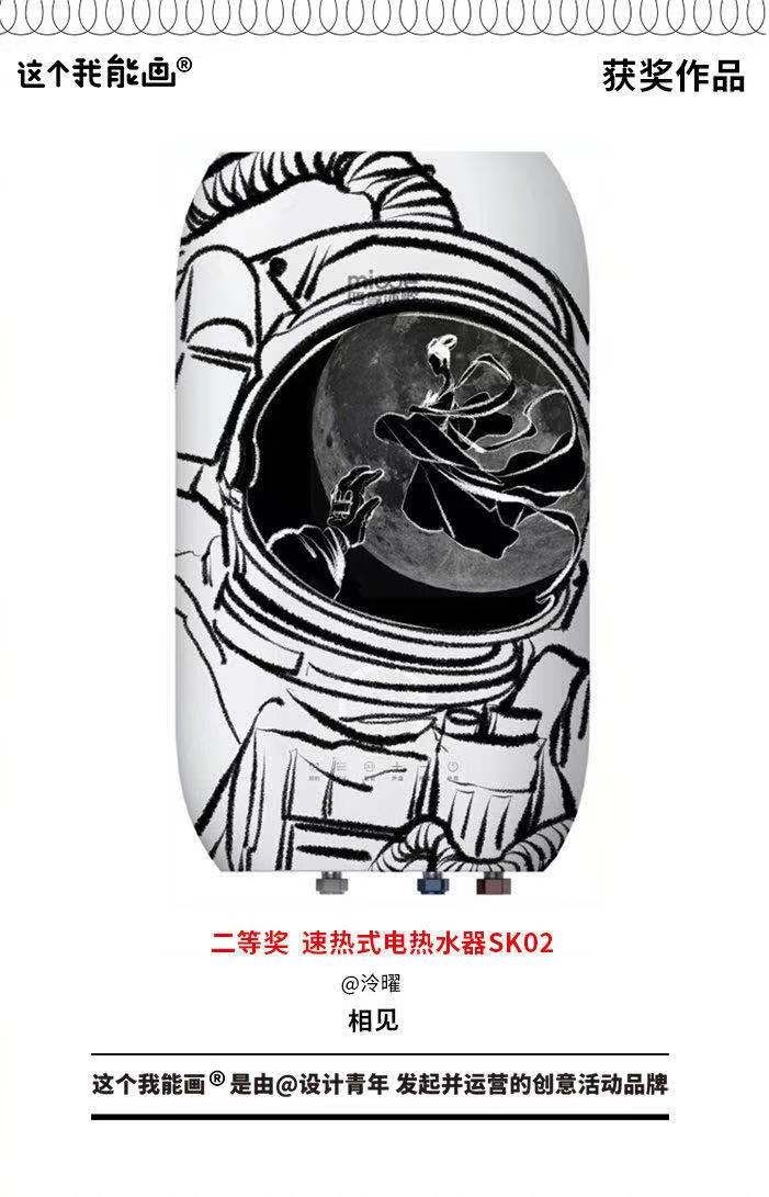 而本次以微博平台为依托,并联合目前在设计美学领域顶流位置的设计青年,共同开展的“我和嫦娥有个约会”DIY创意创作活动,更是吸引到了线上295万人的围观讨论,以及2423人次的热情参与,再次成为中国航天相关活动中的一大热点。据悉,此次活动的开展形式是以四季沐歌速热电热水器机身表面为“画布”,以“我和嫦娥有个约会”为话题,让设计圈大咖们尽情挥洒天马行空的想象力与创造力。在赋予“嫦娥奔月”以新意的同时,更通过这种方式同贺“中国航天探月工程”又一里程碑时刻地到来。
