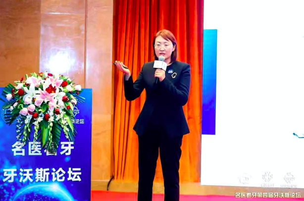 (齿生齿道医疗集团董事长崔平发表演讲)