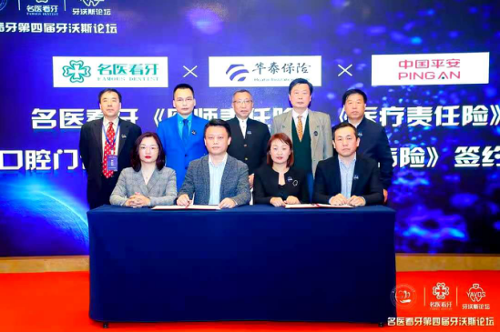 现场在相关领导见证下进行了名医看牙医师责任险、医疗责任险、口腔门诊营业中断险、传染病险签约仪式;