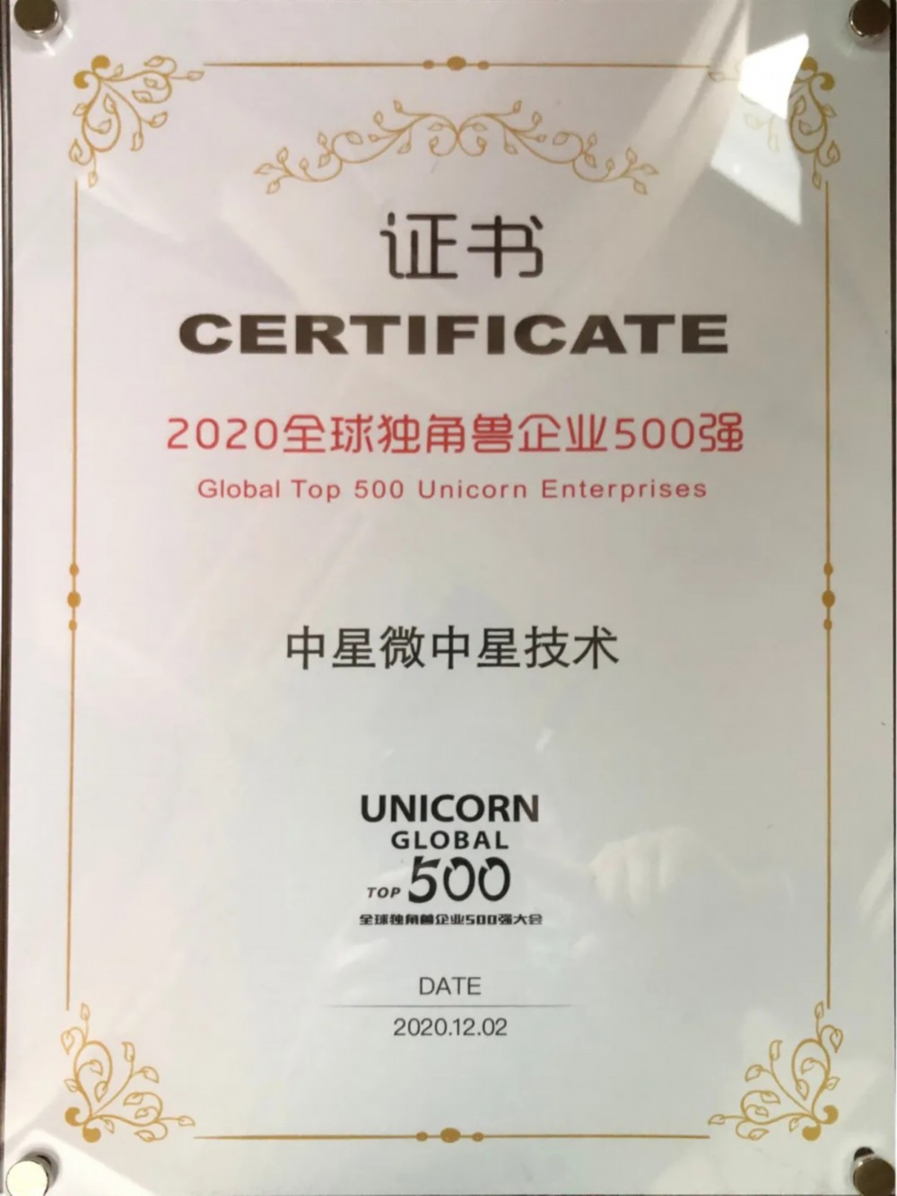 此次大会发布了《全球独角兽企业500强发展报告》,并向2020全球独角兽企业500强颁发了证书,中星微中星技术作为独角兽企业代表上台领奖。