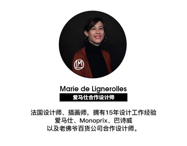 她来自法国,拥有15年的设计工作经验,爱马仕、Monoprix、巴诗威以及老佛爷等知名大牌,都有跟她保持着密切的合作关系,设计过很多时尚艺术爆品。