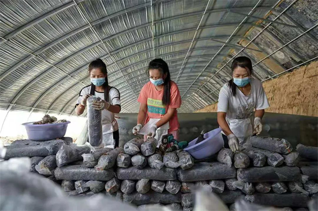目前香菇棚建成135座,现在已经运营了84座,基地共带动了周边286人增收,其中雇佣65名困境女性,她们均为建档立卡贫困户。