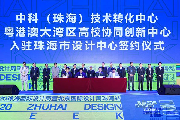 本届设计周开幕式上,作为今年重要落地成果之一,由珠海市工信局等单位指导,华发集团负责运营,联手北京、香港、澳门等地核心设计力量共同建设的珠海市设计中心正式揭牌。同时,开幕式现场还举办了港澳大湾区高校协同创新中心及其首个项目“青年设计100”入驻珠海市设计中心签约仪式。