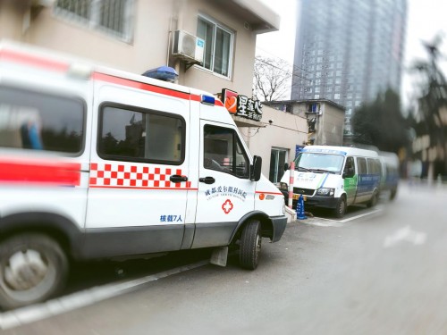 医院调配1辆专业救护车+7辆医疗专用车,通过应急领导小组指挥系统,随时进行电话沟通,一有需要,立马启动车辆调配方案,全流程无缝连接。