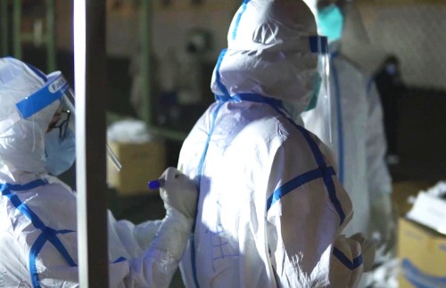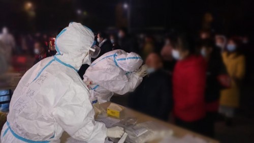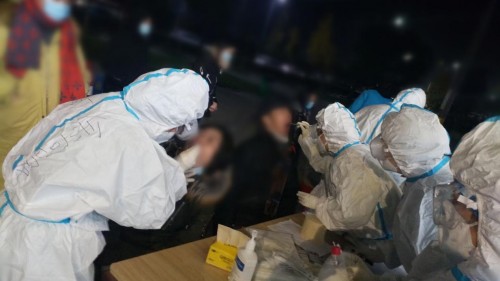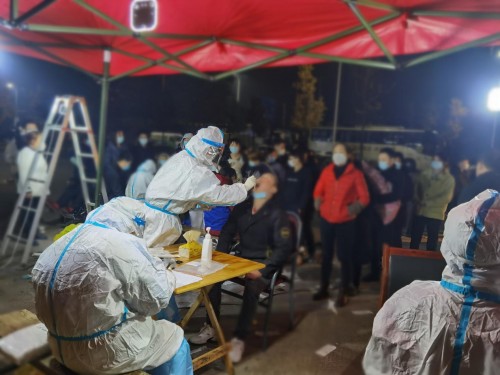 4个小时,这支队伍一刻不停地采集核酸样本,冷了,就跺跺脚,渴了,咽口水,饿了,忍着。她们没有一个人喊苦喊累,因为看着排着长长队伍的等待采样的人们,他们心里比谁都着急。