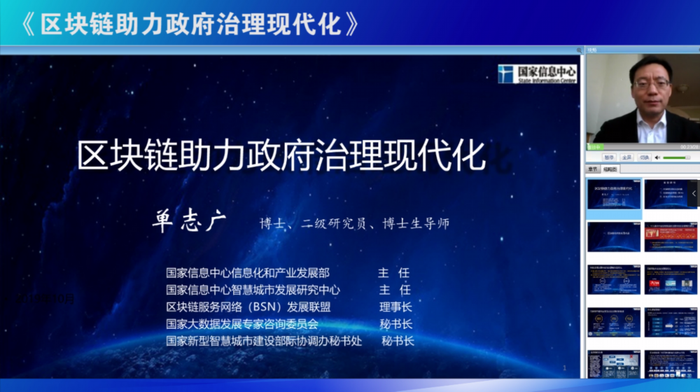 国家信息中心信息化和产业发展部主任、国家大数据发展专家咨询委员会秘书长单志广作了题为《区块链助力政府治理创新》的视频演讲。他指出,区块链将带来科学、技术与社会科学互相叠加的“范式”模式革命。上网、上云、上链,从信息互联网到价值互链网,将成为信息化深化发展的必由之路。区块链对智慧城市、数字经济、数字政府、一带一路等影响深远,是提高治理体系和治理能力现代化的重要技术支撑,其广泛应用将有力推动我国社会治理的数字化、智能化、精细化、法治化水平。