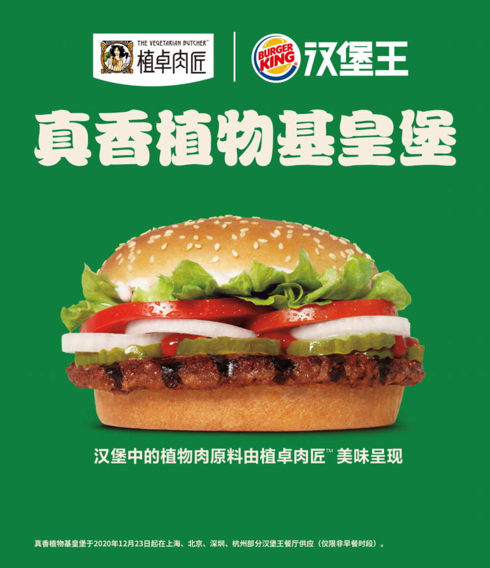 今天植卓肉匠正式登陆中国市场,与餐饮巨头汉堡王联合推出真香植物基皇堡。让消费者享受美味的同时,更轻松地拥抱健康、环保可持续的生活方式。