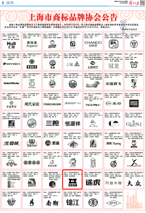 2020年12月22日,“百姓装潢”商标正式入选上海市商标品牌协会公告的“上海好商标”名单,一同公布的还有“中国商飞”、“大众”“恒源祥”、“上海电气”等上海知名企业品牌,共62件知名商标。