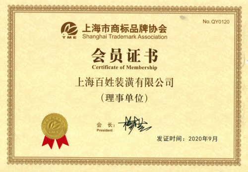 百姓装潢荣膺上海市商标品牌协会理事单位