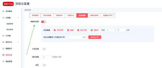 年会直播屏蔽词设置