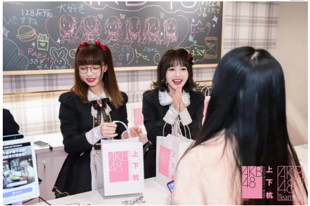 1月2日,AKB48中国姐妹组合AKB48 TEAM SH惊喜现身,助力内陆首家AKB48 CAFE&SHOP的开业。2日下午3点,AKB48 TEAM SH成员刘念、朱苓、吴安琪、叶知恩、沈莹、毛唯嘉现身粉丝见面会,表演了组合脍炙人口的曲目《好想见到你》、《恋爱幸运饼干》、《365天的纸飞机》,现场还特别设置了粉丝提问环节,气氛热烈。见面会后,AKB48 TEAM SH成员现场化身烘焙师,亲手为粉丝们制作手工饼干并赠送给粉丝们,同时,各位成员还出任AKB48 CAFE&SHOP“1日店长”,亲自为粉丝们服务。
