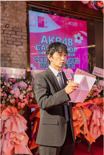 开业当天,日本Vernalossom事务所代表新山先生亲临现场参加剪彩仪式,并接受媒体采访。新山先生表示,他是第一次来到福州,对福州对印象非常好,在问到新山先生对AKB48 CAFE&SHOP落地福州上下杭的看法,新山先生表示,“希望能透过AKB48 CAFE&SHOP上下杭的落地,了解更多中国粉丝的心声,并且也希望能借此吸引更多的同好,让AKB48 CAFE&SHOP在中国各个城市落地”;对于AKB48 CAFE &SHO在未来的期许,新山先生表示,“在未来,期待在这个平台上与中国粉丝们进行更深入的交流与互动,疫情稳定后,我们也十分期待更多海外的AKB48姐妹团成员,与粉丝们见面与交流”。