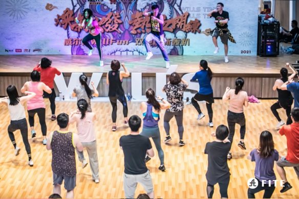 12月26日下午,新秀运动品牌FITE携手爱动健身、威尔仕健身联合发起双旦迎新轰趴活动,双旦轰趴活动内容包含4节明星团操课,分别为SUPER FLOW瑜伽,I-PUMP 燃动杠铃,I-CYCLING 效能单车,以及风靡全球的南美热舞Zumba。