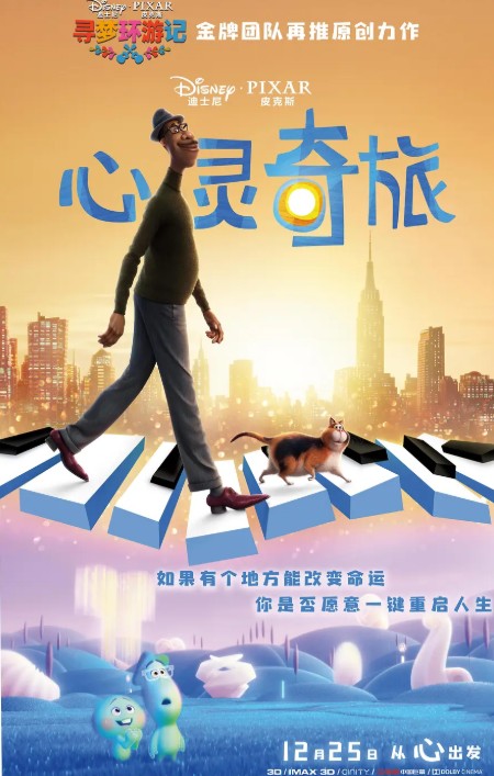 影片由《寻梦环游记》原班人马创作,该片讲述了梦想成为爵士钢琴家的男主Joe Gardner与厌世的灵魂22相遇,他们携手返回现实世界寻找生命的意义的故事。