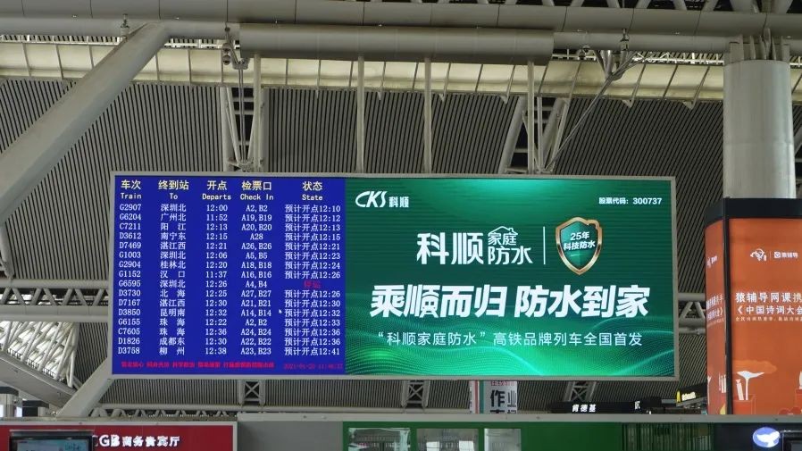 从站台到车内,桌贴、枕巾、海报、高铁站广告等多种媒体形式,科顺家庭防水列车将覆盖京广高铁、沪深高铁、京沪高铁等多条线路,辐射至全国各地。