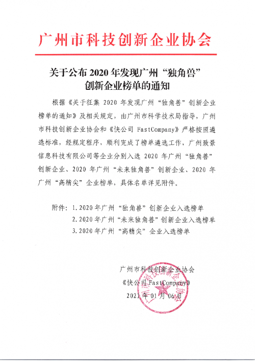 据了解,广州“独角兽”创新企业系列榜单于2017年首次启动,旨在发掘广州本土创新性强、增长速度快、发展潜力大的独角兽企业,涵盖大数据、云计算、物流供应链、信息技术、物联网、生物医药、人工智能、智能硬件、新能源、新材料、先进制造等战略性新兴产业。通过挖掘和培育,发挥“独角兽”创新企业对行业的创新引领作用,培育未来领军型创新企业。