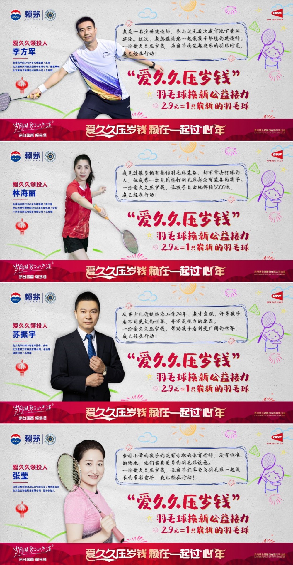 “爱久久压岁钱”羽毛球换新公益接力活动的构想一经提出,就得到了众多“赖茅粉”和赖茅各渠道合作伙伴的积极响应。