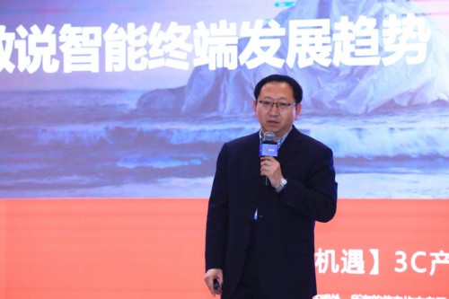 GFK Telecom运营商业务负责人毕辉就“数说智能终端发展趋势”做主旨演讲。他从手机市场容量、渠道销量等数据,分析目前手机零售店将面临重要的发展机遇,尤其是店面和线上相结合,从云货架到仓联网,以轻资产方式扩大品类。高端产品将从高线城市向低线城市拓展。