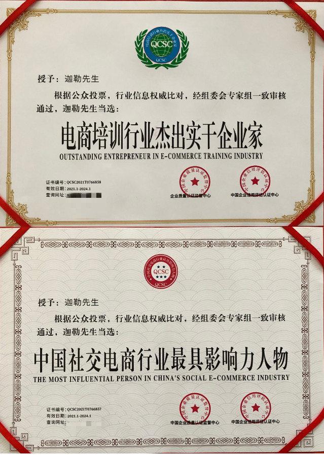 取得此次荣誉,再次证明了迦勒先生在电商培训行业的影响力,充分肯定了迦勒先生个人创业方面成功的新商业模式。