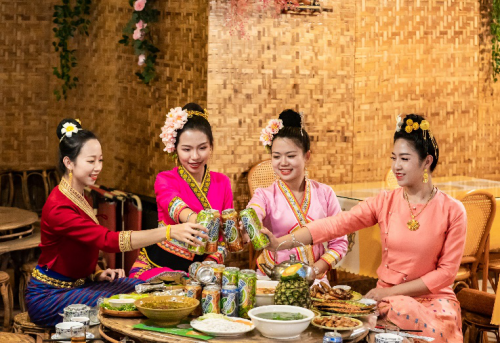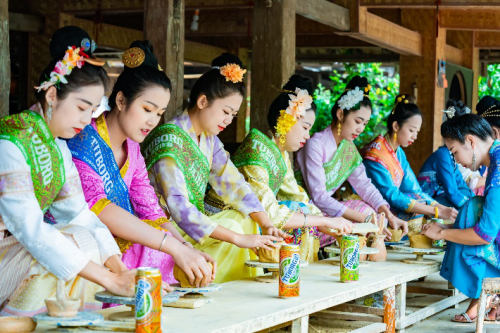 傣餐制作课上更是开启美味新尝试,以乐堡啤酒傣族文化罐作为佐餐酒,搭配酸辣风味的傣餐,清爽可口的傣式下午茶带来味蕾享受。
